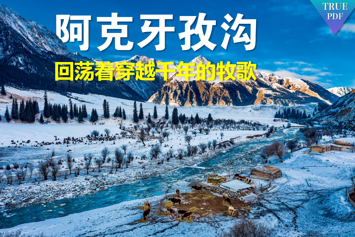 与新疆作家李娟《冬牧场》中描写的阿勒泰哈萨克族牧民的冬窝子相比,位于南天山群峰下的阿克牙孜沟,冬日里也称得上水草丰茂、气候宜人,美好得就像“桃花源”一般。早在千年之前,这里就是牧民们理想的家园,古老的游牧族群在这里留下了草原石人、岩画等众多遗迹。现在,这里则是伊犁河谷最大的冬牧场之一。–摘自《中国国家地理》共24页
